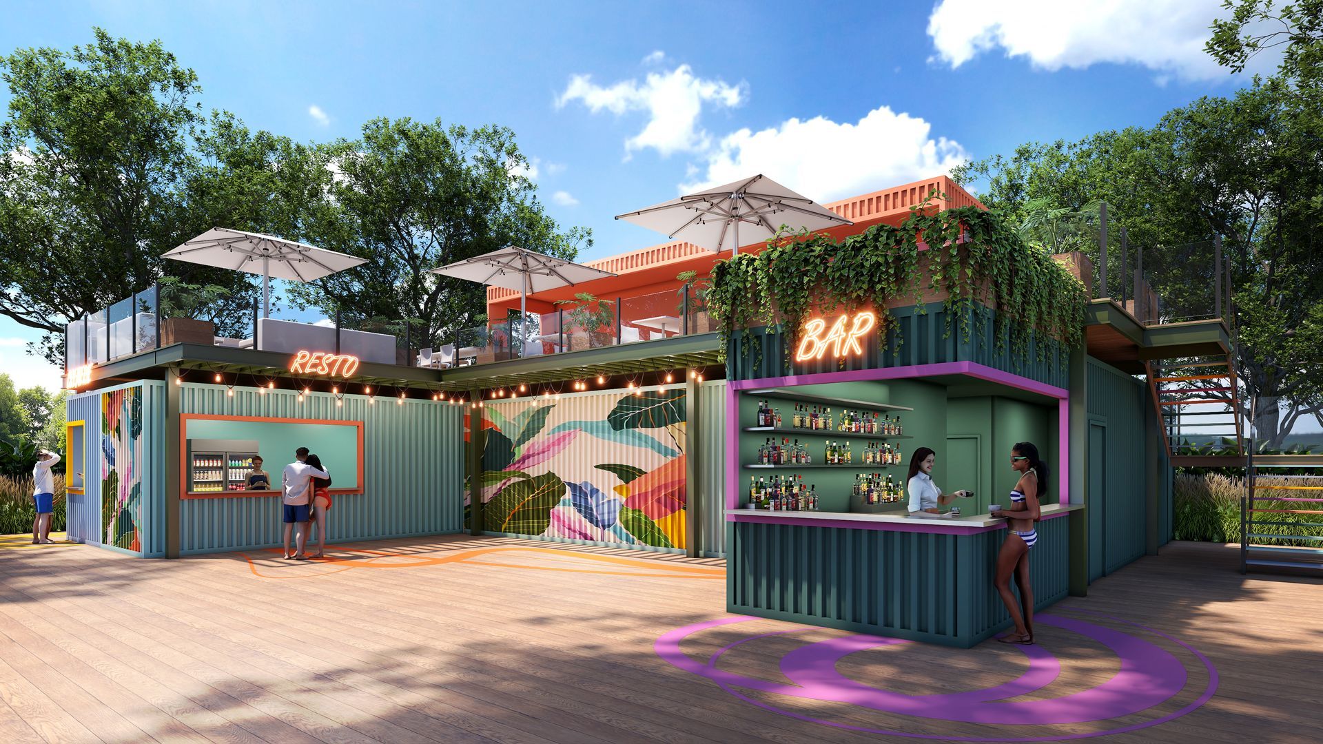 Les visuels ci‑dessous, signés Projet Paysage, présentent la vision finale de cette nouvelle section du parc aquatique.