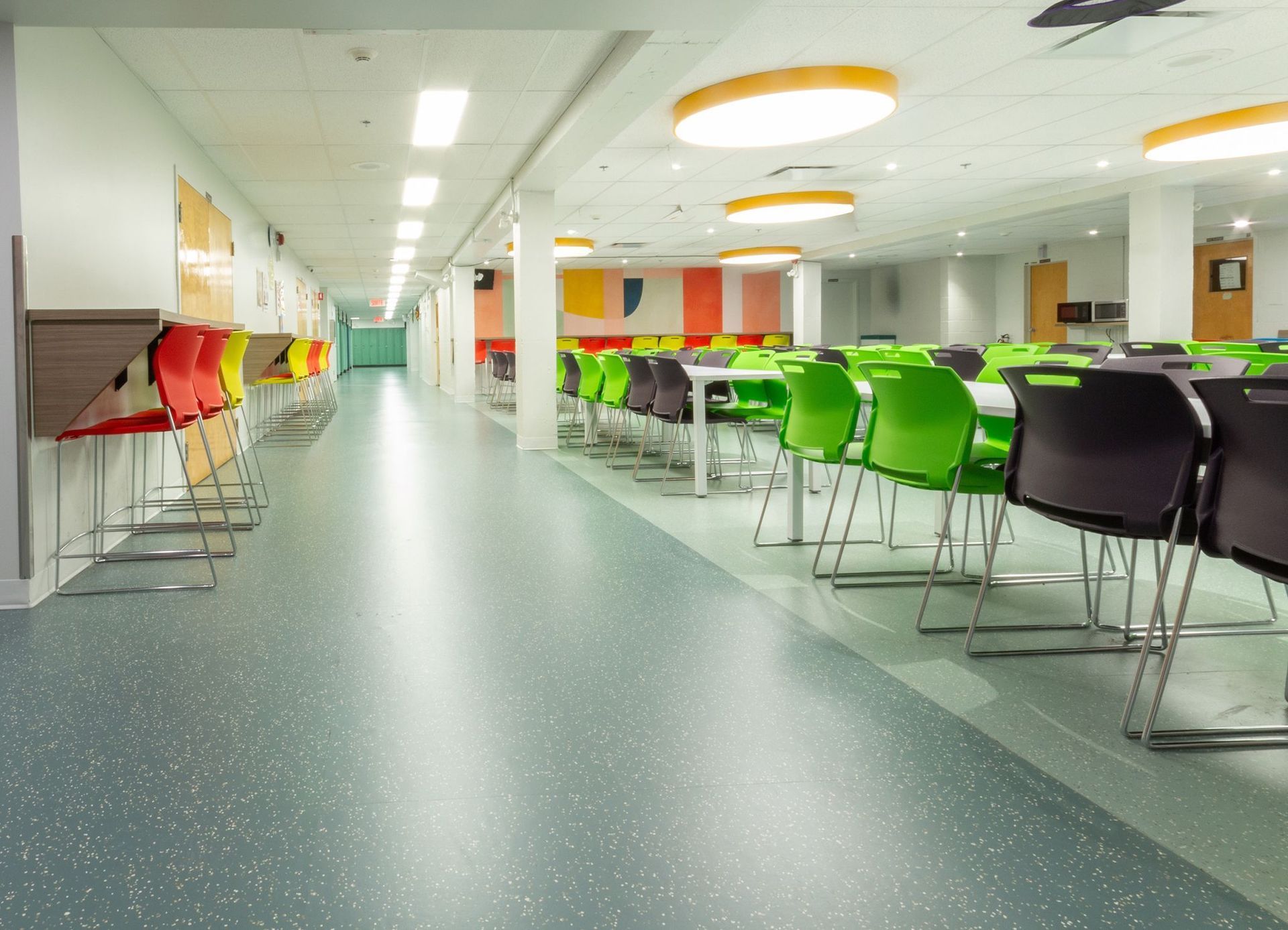 Ce projet a été mené en collaboration avec des professionnels du milieu et visait à moderniser et optimiser des espaces essentiels à la vie quotidienne des élèves. L’aménagement a été pensé pour favoriser la fluidité des déplacements, tout en créant un environnement confortable, sécuritaire et accueillant.