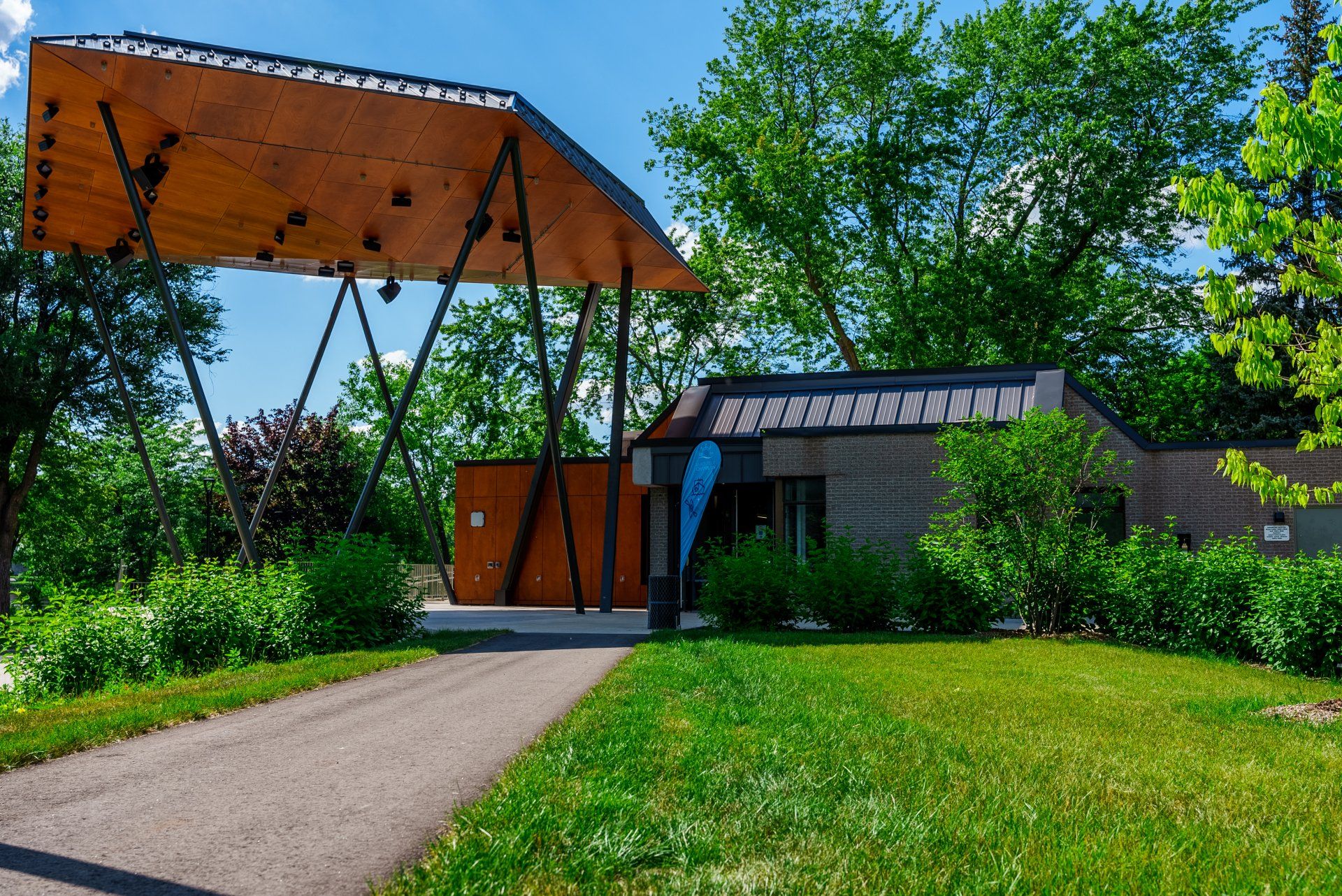 Situé au cœur de l’île Sainte-Hélène, le Pavillon des activités nautiques bénéficie désormais d’une cure de jeunesse grâce aux récents travaux réalisés dans le cadre de sa modernisation. Les rénovations ont permis de transformer l’aménagement intérieur pour mieux répondre aux besoins des usagers, tout en respectant l’architecture distinctive du site. Les espaces d’accueil et de services ont été repensés, et les aménagements extérieurs ont été restaurés dans un souci d’harmonie avec le design original du pavillon. Ce projet, mené dans un environnement public à fort achalandage, illustre une approche rigoureuse alliant fonctionnalité, durabilité et intégration urbaine. Merci à l’ensemble des équipes et partenaires qui ont contribué à la réussite de ce chantier. Des photos du projet sont présentées ci-dessous. Firmes et professionnels impliqués : Parc Jean-Drapeau Bouthillette Parizeau Projet Paysage Riopel et Associés Architectes Équipe Laurence, Ingénierie Civile